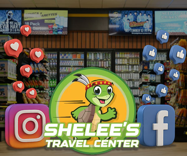 Follow us on Instagram and Facebook for exclusive sneak peeks, the latest promotions, and a front-row seat to all the daily fun happening at Shelee’s Travel Center! Don’t miss a moment—join our online community today!